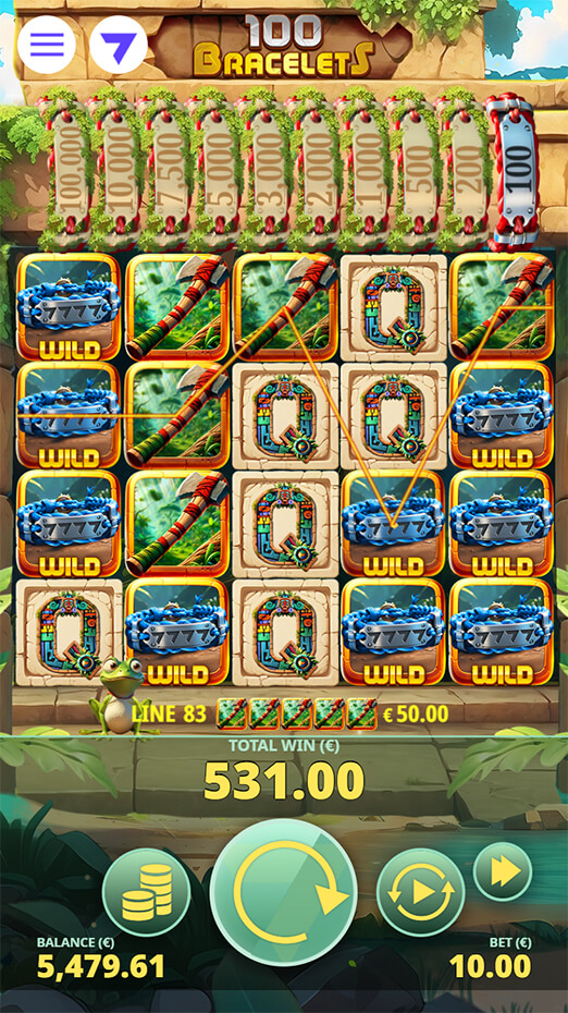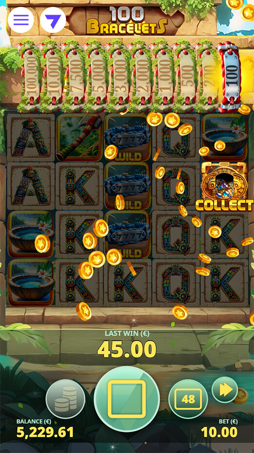 For the first time, challengers all at once will enter the great race for the source of true power - THE BRACELET. Behind the palm trees an AI generated oasis awaits, filled with tropical fruits and flowers. Read the engraved stone signs and climb to the top to win the Island's Fortune!