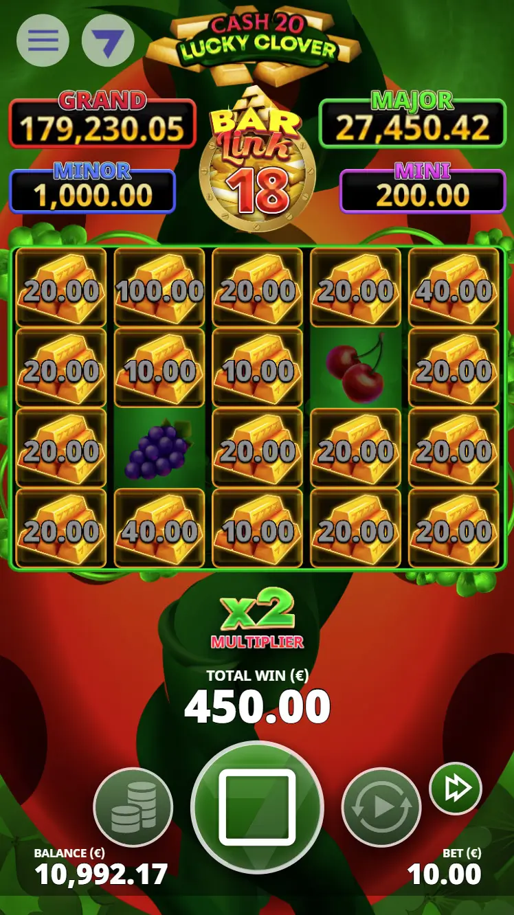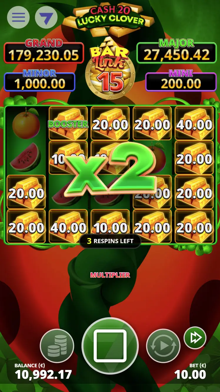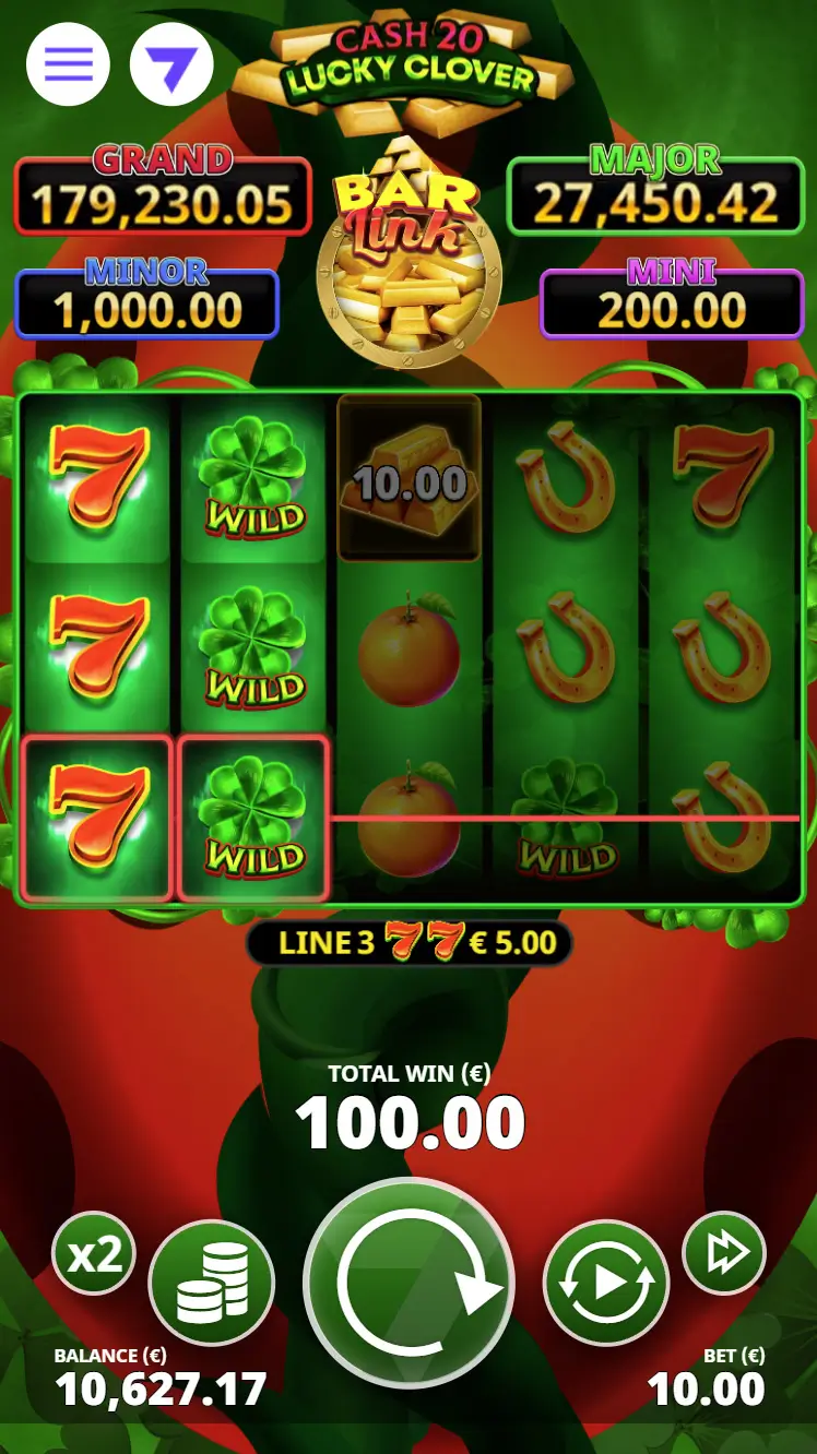 Combine expanding clovers with an action-packed Jackpot game! Bars will rain down to deliver a glorious reward or even supercharge your win with a booster.