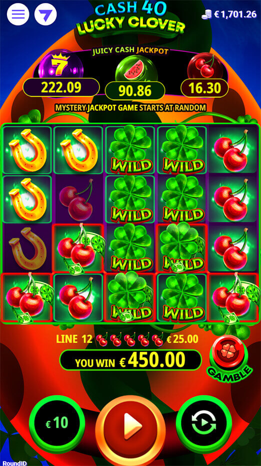 Experience a fruity adventure in our lucky clover slot game! Spin the reels filled with vibrant fruits and win big with expanding wilds, gamble for double the fun and a refreshing Jackpot game.