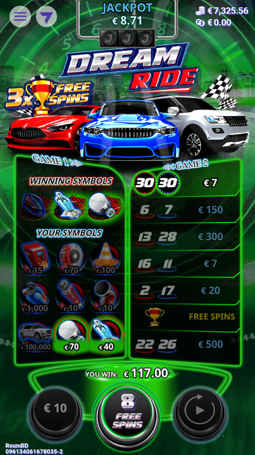 Enjoy the ride and win fast! Special Jackpot game and 2 chances to win in every round. Match and win a game with a variety of prizes, Free Spins, and a unique Jackpot game! Easy and fun for all muscle car lovers.