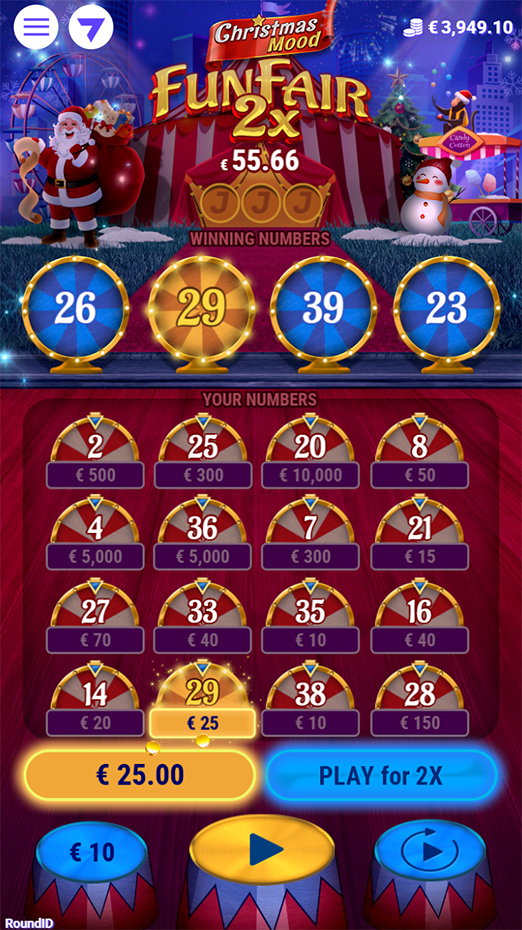 A big win is never enough, so spin the Wheel to double it and submerge yourself in the Christmas atmosphere. Smile with our little snowman and match the numbers in order to take the money or try your luck on the Wheel to make the big win even bigger.