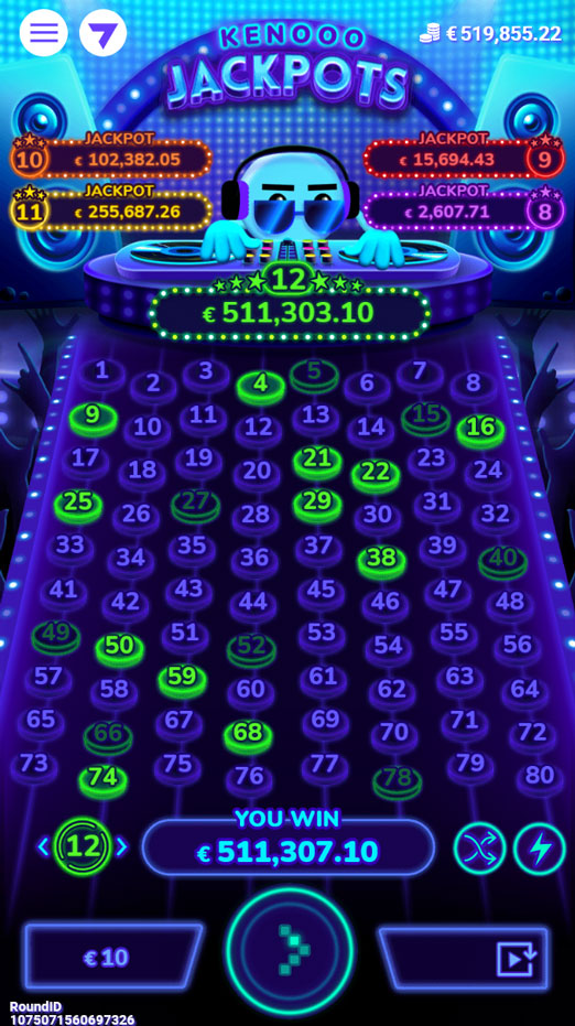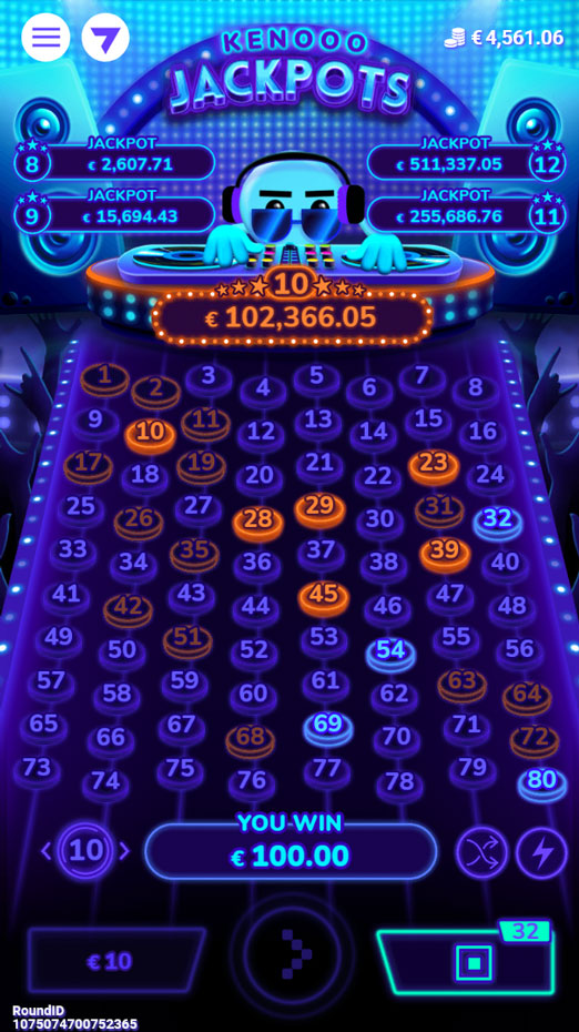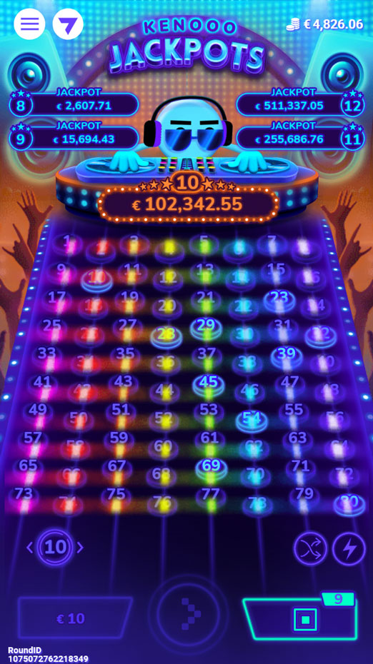 Turn the volume to the max with Five Different Progressive Jackpots in one game. Pick your numbers on the dancefloor and hit that play button. Watch the DJ and the lights hit with the notes just the right numbers. Eight to twelve numbers can bring a Jackpot each.