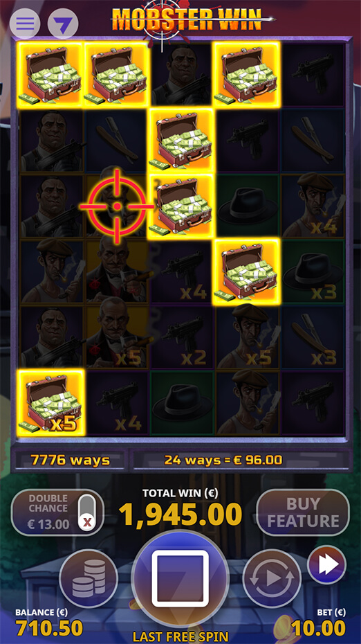 Become a witness to this thrilling gangster affair, loaded with bullets and piles of cash! Let yourself be seduced by the Wild prizes and keep an eye on the sniper, as it brings double rewards. Prepare your getaway car for the bonus round, cause you could grab the killer win!