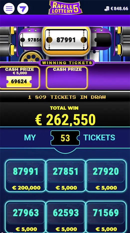 Don't miss your chance! Step into a world where every draw has a guaranteed winner! Get a single ticket or increase your chances with rich bundles that bring you closer to life-changing prizes.