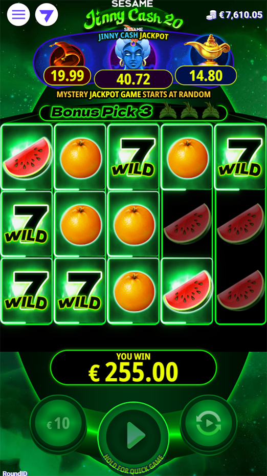 A mystical slot sequel where anything is possible. Prepare for extra fruitful prizes in a starry sky bonus level. Suddenly, the Jinn and his lamp transport you to his magical realm, where you will walk away with one of three rising jackpots.