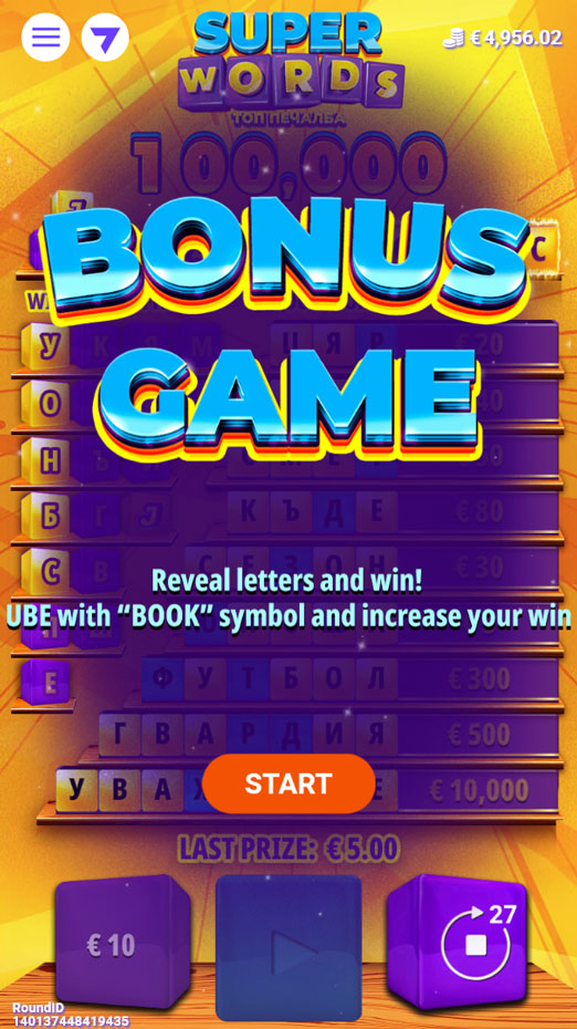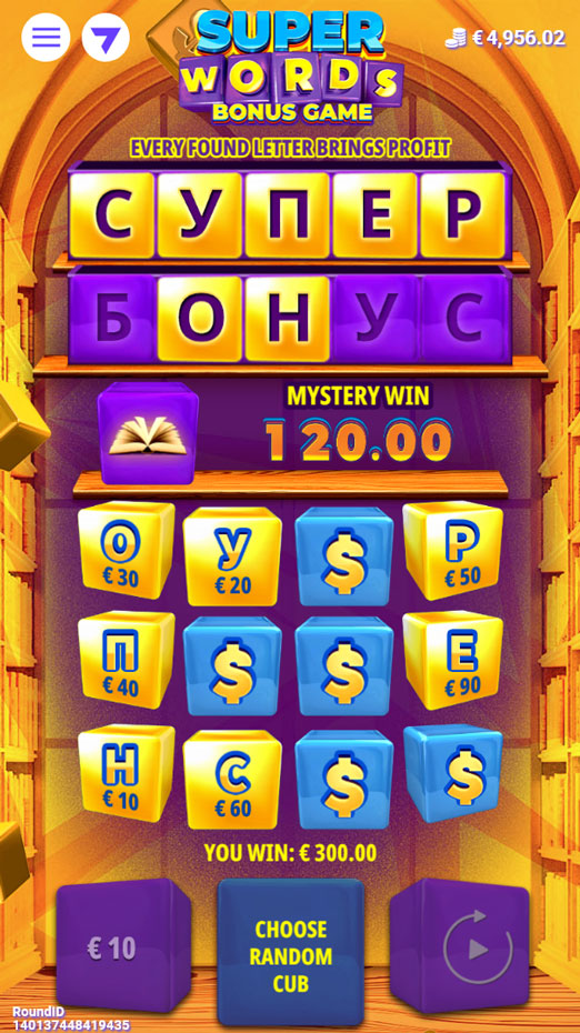 Enter the golden library and find super words that will bring super prizes. A fast and funky ticket game for discovering winning letters and forming words.