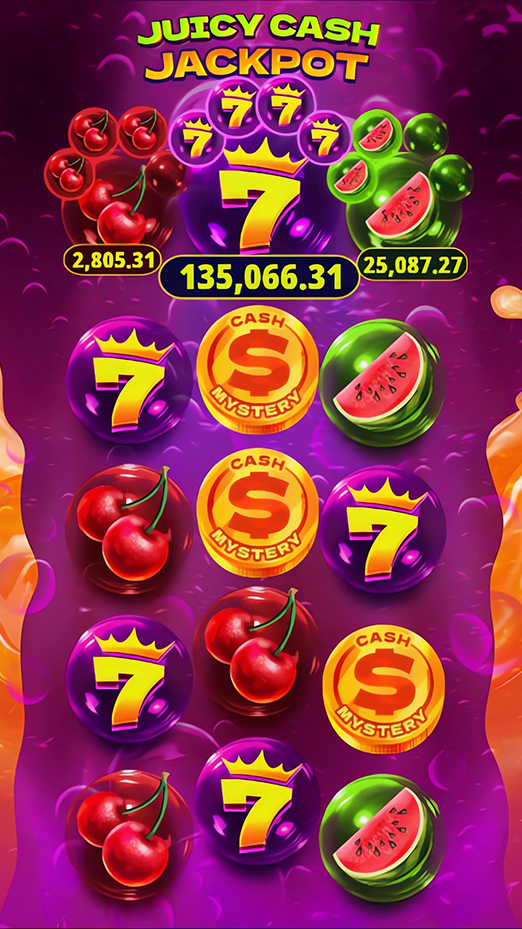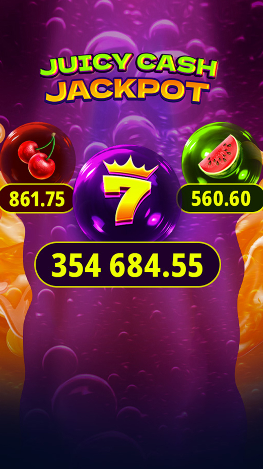 The Juicy Cash Jackpot connects to an ever-increasing selection of top-performing 7777 gaming slots. Dropping randomly at any time during gameplay, this mystery jackpot is packaged with a mini game and includes 3 jackpot levels.